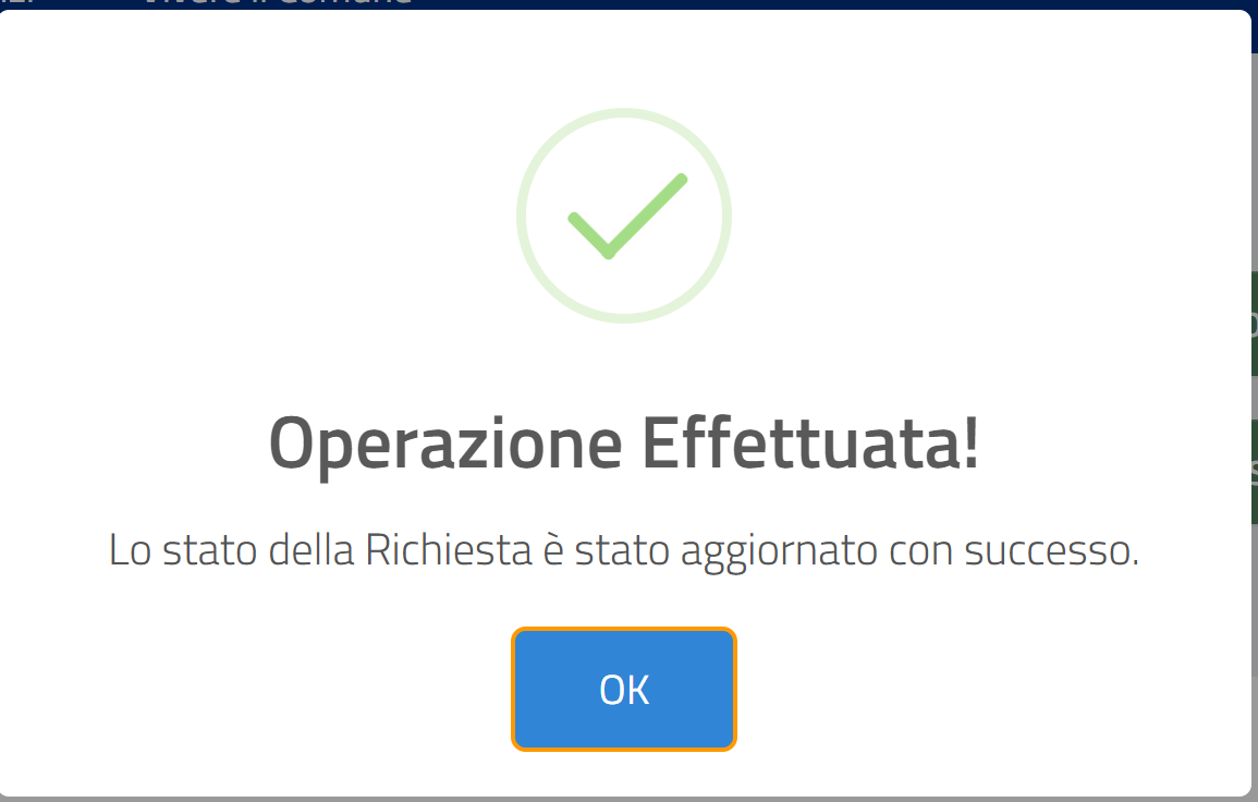 Una volta cliccato sul pulsante "CONFERMA" attendere il messaggio di avvenuta operazione.