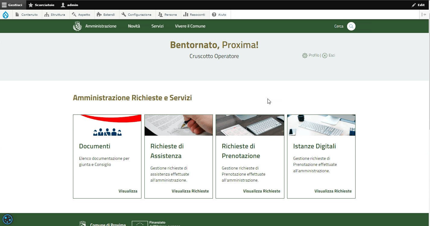 Una volta effettuato il LOGIN l'utente verrĂ autenticato sulla pagina del Cruscotto Operatore: