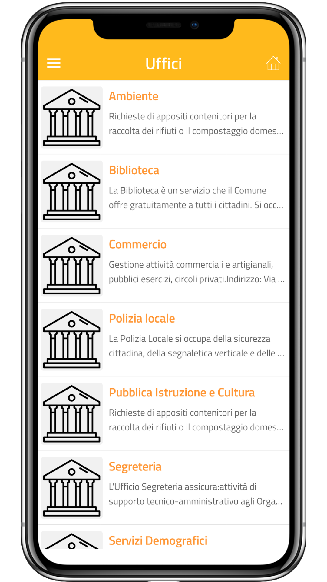 Si accede all'elenco degli uffici. Tappando su ogni singolo ufficio si possono leggere tutti i dettagli