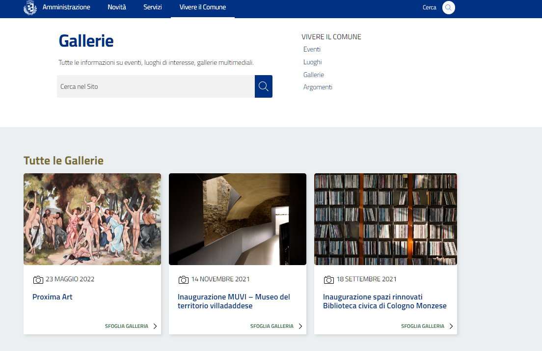 Questo contenuto permette di creare gallerie fotografiche che verranno pubblicate sotto la voce "Vivere il Comune" del menù principale.