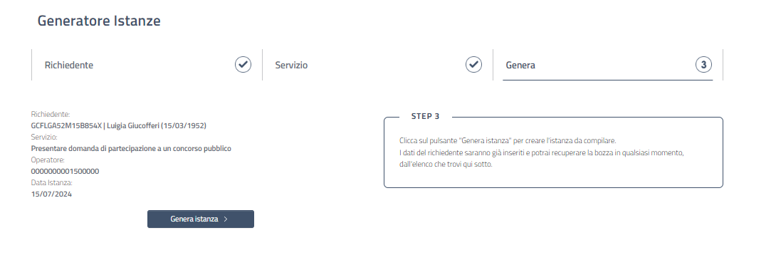 GENERARE UN’ISTANZA PER IL CITTADINO