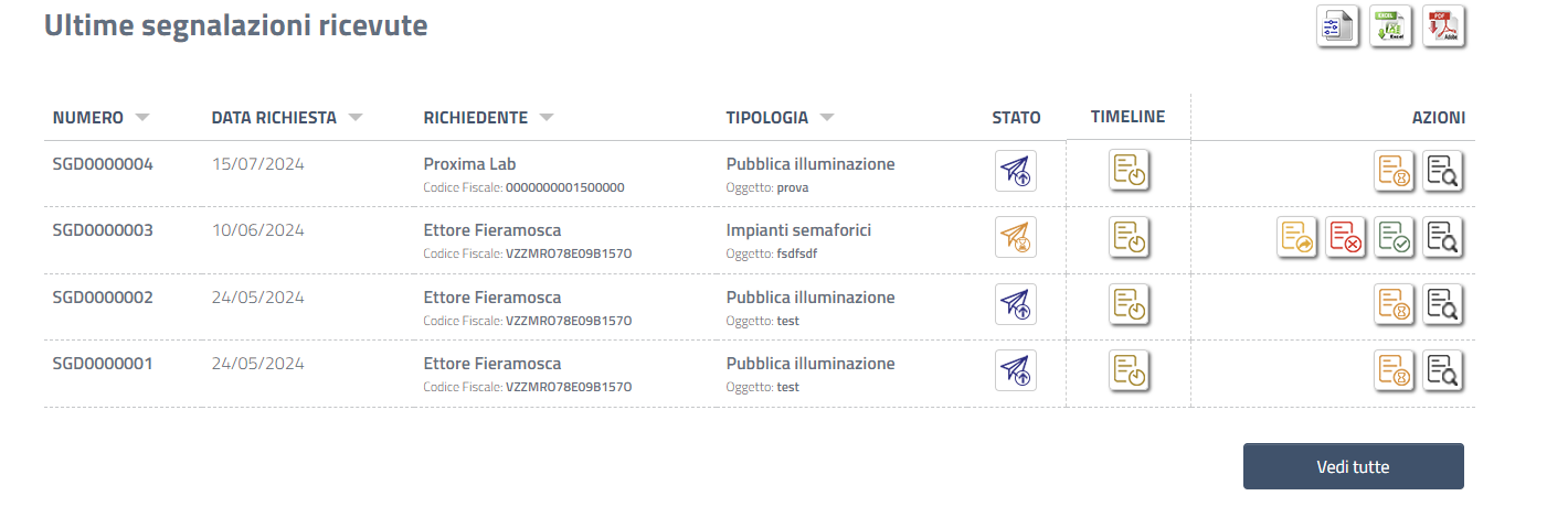 Qualora abbiate ricevuto una richiesta di segnalazione disservizio, tale richiesta verrà visualizzata all'interno del pannello "Istanze digitali" nella sezione Ultime segnalazioni ricevute.