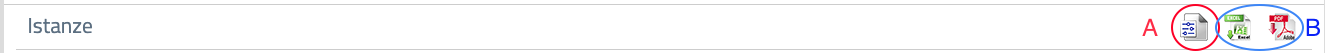Subito sotto i contatori ci sono tre icone che ci permettono di impostare i filtri di visualizzazione (A) o di esportare i dati in formato compatibile con Excel o in PDF (B).