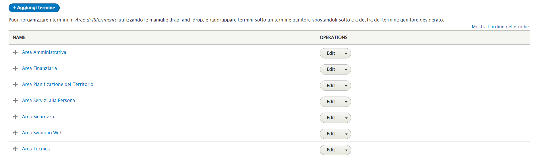 Selezionare "Aggiungi Termine" nel caso si voglia aggiungere una voce oppure "Edit" per modificarne una esistente.