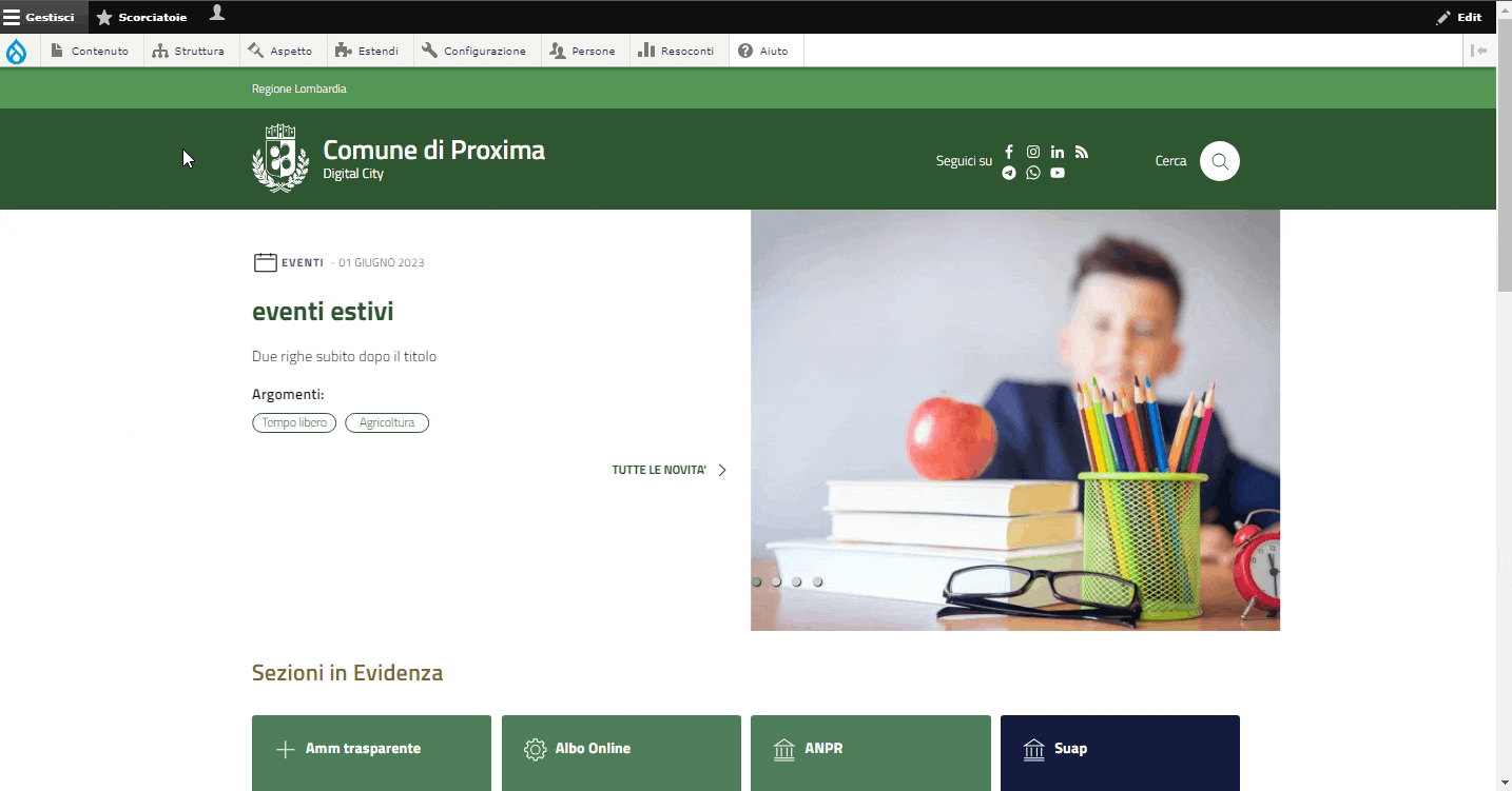 Alcune sezioni quali le Aree Amministrative o la categoria delle FAQ hanno strutture che possono essere modificate o create all'interno del menu "Struttura".