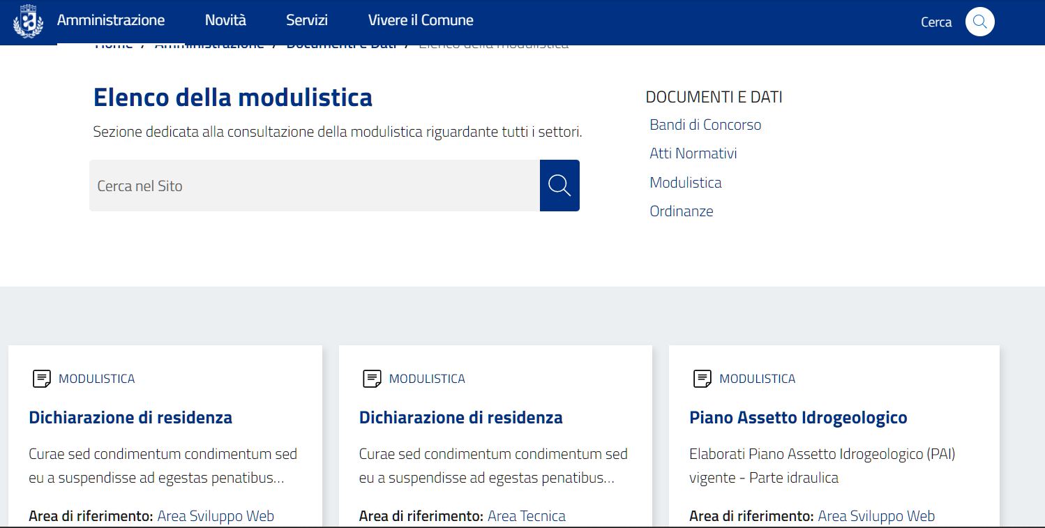 La centralizzazione della modulistica è funzionale non solo per avere un solo luogo preposto a raccogliere tutti i moduli, ma anche per ottimizzare i caricamenti, in quanto, se un modulo dovesse riferirsi a più di un Servizio o Ufficio, sarà caricato una sola volta.