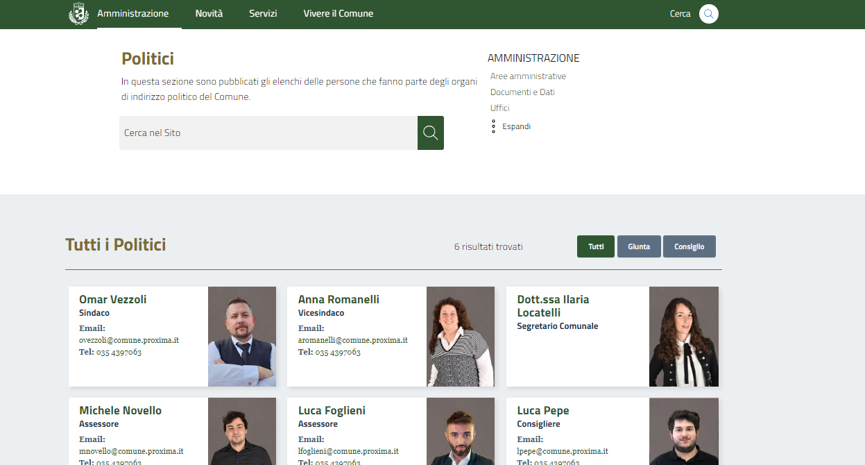 Questo contenuto permette di profilare i politici da aggiungere ai diversi organi politici.
