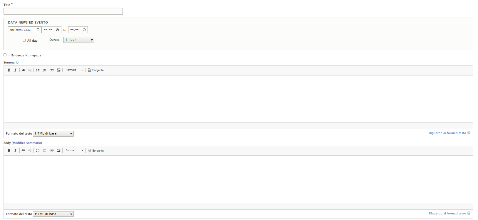 - Body: È il cuore dell'articolo; in questa sezione andrà redatto l'articolo. Nota Bene: In questa sezione non vanno inserite immagini o locandine.