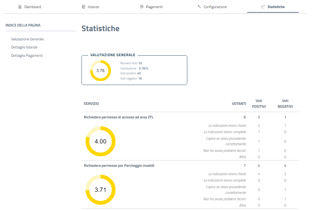 Cliccando su "Statistiche", si accede semplicemente alle statistiche relative ad ogni aspetto del portale.